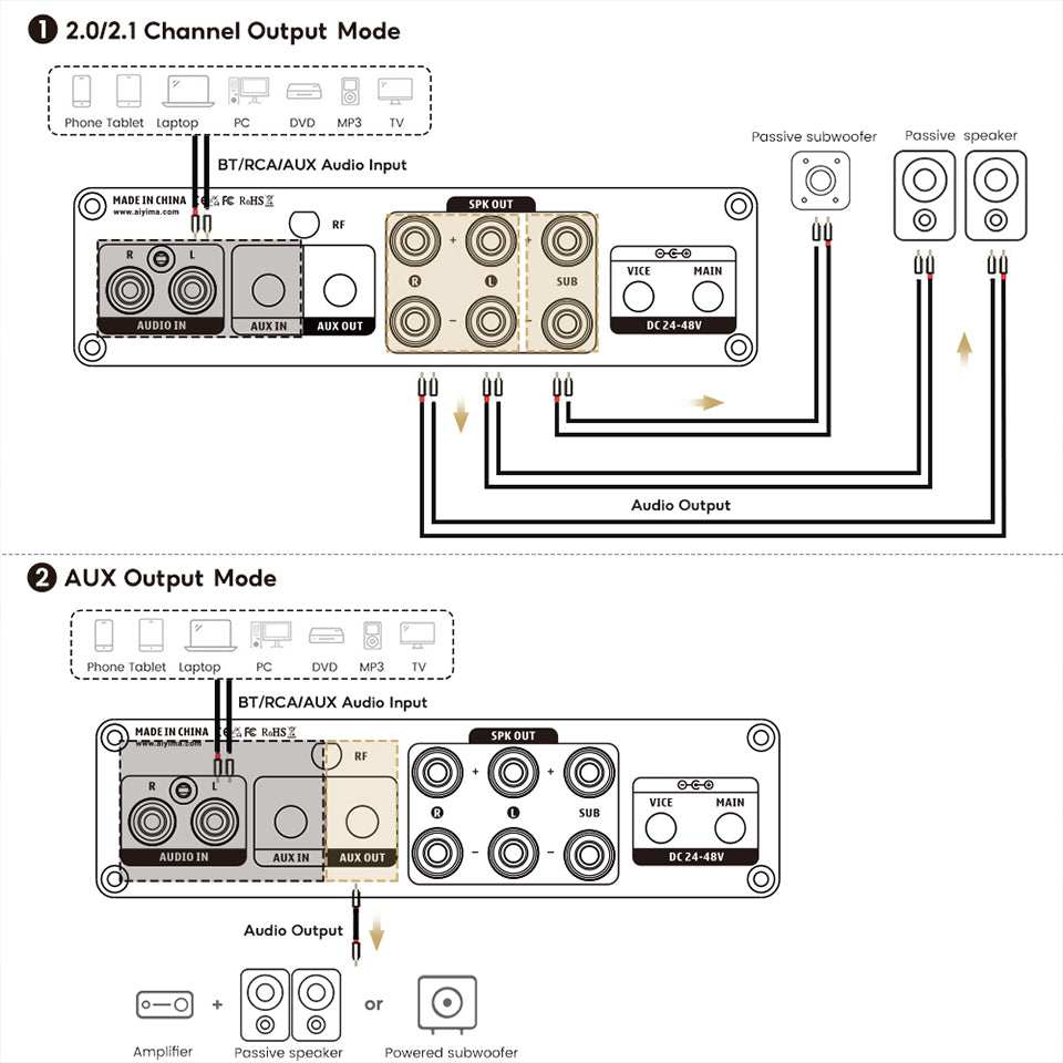 Output mode: passive speaker + passive subwoofer + active subwoofer