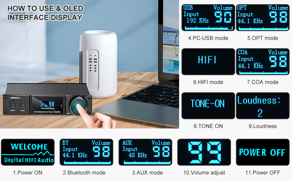 Amplifier max output power: 120W+120W, load 4Ohm speaker