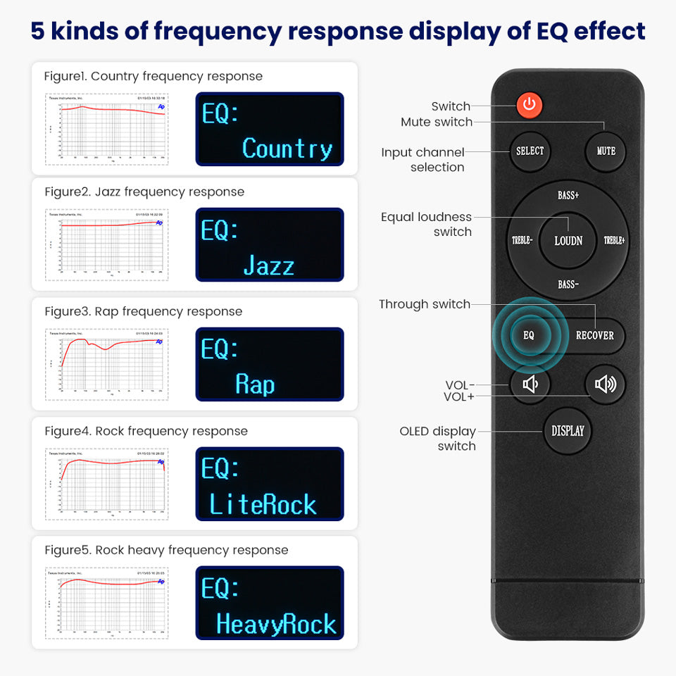 Open different EQs in TONE-ON mode, HIFI mode is pass-through mode