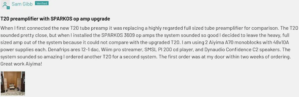 Very happy with this preamp. I had Topping d50 III directly connected to amplifier audiophonics S450 ET purify chip . When i connected in the chain the Aiyima T20 i could listen to music at a low volume and all the words were clear, musical, excellent . The bass also got a bit tighter and a little louder (i am speaking here the output rca ffrom T20 goes to my subs) and the xlr goes to the amp . Very very satisfied and happy